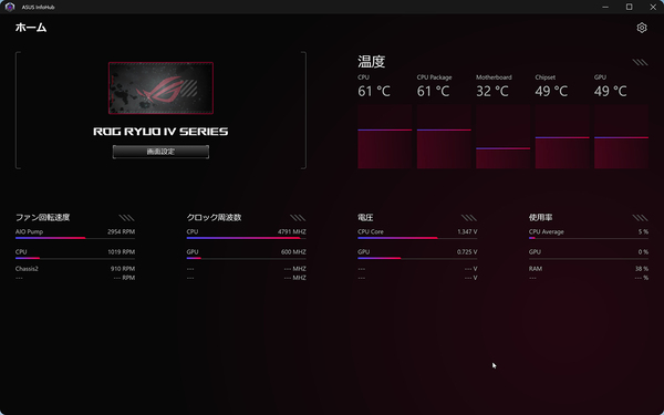 制御⽤ソフトウェアのASUS 「InfoHub」でL字型AMOLEDディスプレーも制御可能になっている。