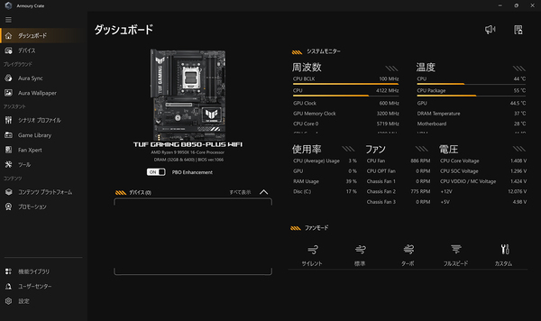 | マザーボード | ASUS「TUF GAMINGB850-PLUS WIFI」 |