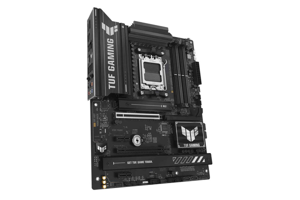 L字型が特徴的なAMOLEDディスプレーに組み合わせたマザーボードは「TUF GAMINGB850-PLUS WIFI」。質実剛健なTUF Gamingシリーズの中でも人気のマザーボードだ。