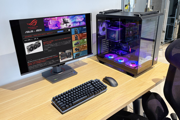 上記パーツ構成の自作PCに、27型4Kゲーミングディスプレー「ROG Strix OLED XG27UCDMG」とゲーミングキーボード「ROG Strix Scope II 96 Wireless Gaming Keyboard」を組み合わせた