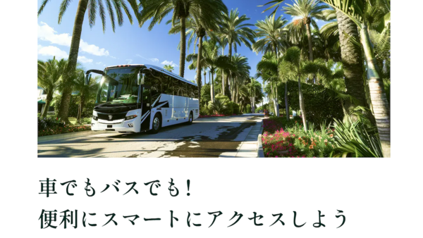 本島北部にあるジャングリア沖縄までのアクセスは、シャトルバス「ジャングリア エクスプレス」があります。那覇空港や那覇市内(大人2500円・小学生以下1250円/乗車時間 約2時間20分)、名護市役所バス停、オフィシャルホテルズ(一部を除く)、沖縄美ら海水族館から乗車可能。那覇空港からは1日12往復の便が出ていてアクセスが良いです。