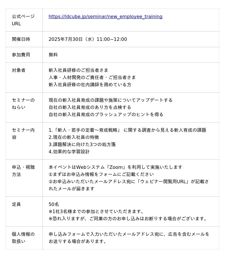 「新入社員育成の課題と効果的な学習設計のポイント」ウェビナーを開催(7月30日11:00~12:00)|株式会社LDcube