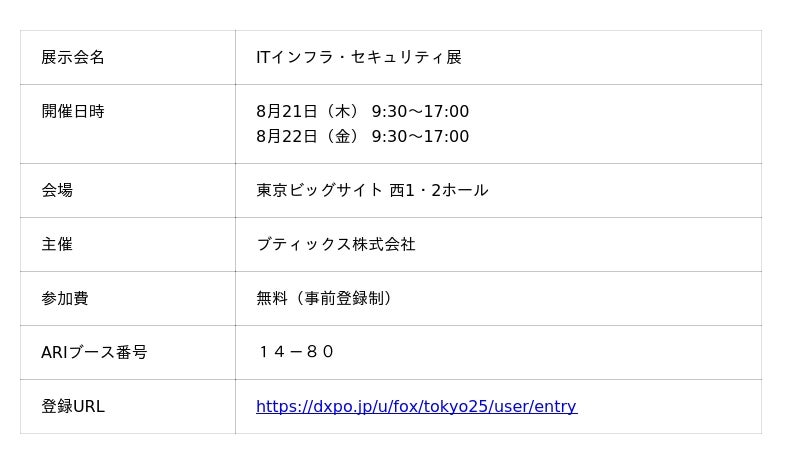 ・IT・情シスDXPO東京’25:https://dxpo.jp/real/fox/tokyo/system/