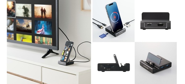 エレコムは7月29日、スマートフォンを充電しながら大画面で楽しむことができるスタンド型ドッキングステーションを8月上旬に発売すると発表した。価格は6,980円。