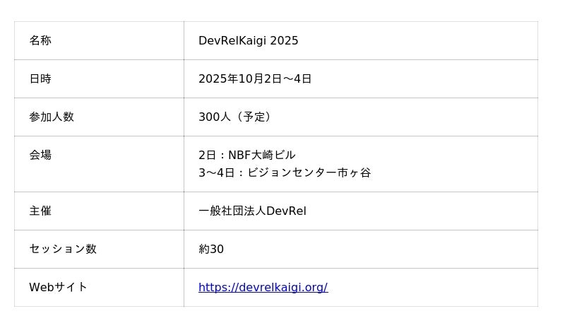 DevRelKaigi 2025は以下の概要にて開催されます。