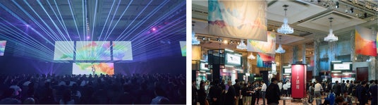 UpdataNOW24の基調講演(左)と展示会場(右)の様子