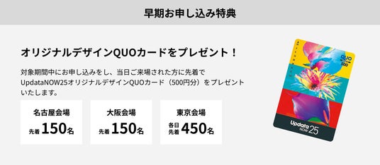 また、早期お申し込み特典としてUpdataNOW25のオリジナルデザインQUOカードを先着でご用意しています。