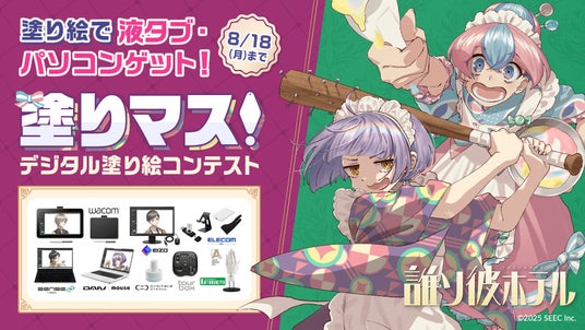 セルシスは、7月29日(火)より株式会社アイビスと共催する、第三十三回デジタル塗り絵コンテスト「塗りマス!」で、「誰ソ彼ホテル」シリーズとコラボレーションします。