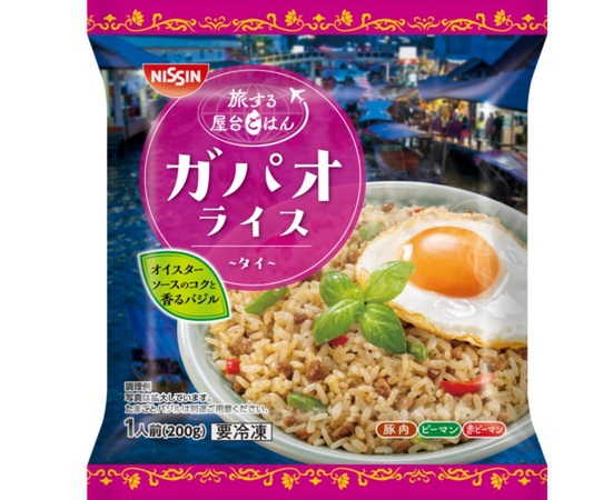 一方の「冷凍 日清 旅する屋台ごはん ガパオライス」( 1人前、200g)は、オイスターソースのコクやナンプラーの旨みをきかせた食欲をそそる味わいを特徴としている。ひと口食べればバジルの爽やかな香りが口いっぱいに広がるんだとか。具材には豚肉、ピーマン、赤ピーマンを入れ、彩り豊かに仕上げている。