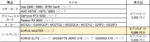 参加条件は非常にシンプルだ。8月1日から2026年1月31日までの間にGIGABYTEの製品を購入し、100文字以上のレビューを指定のサイトで投稿することで、最大5,000円分のVプリカを手にすることができる。キャンペーンへの参加は1つの製品につき1回のみ可能だ。応募期間は2026年2月15日まで。