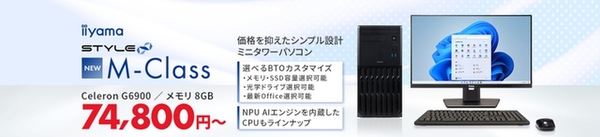 ユニットコムが運営する「iiyama PC」ブランドから、7月29日に新たなミニタワーパソコン「STYLE∞ M-Class」が発売された。この新製品は、普段使いに最適な性能を持ちながら、価格を抑えた設計が特徴。販売価格は74,800円からスタートし、パソコン工房の公式サイトから購入可能である。