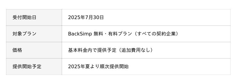 株式会社モクジツ(本社:山口県宇部市、代表取締役:加藤 潤一)は、企業のためのフリーランス管理サービス「BackSimp(バックシンプ)」において、Slack上で稼働・納品・請求・経費処理などを直接実行できる新機能「BackSimp Agent(バックシンプ・エージェント)」の事前予約受付を2025年7月30日に開始しました。