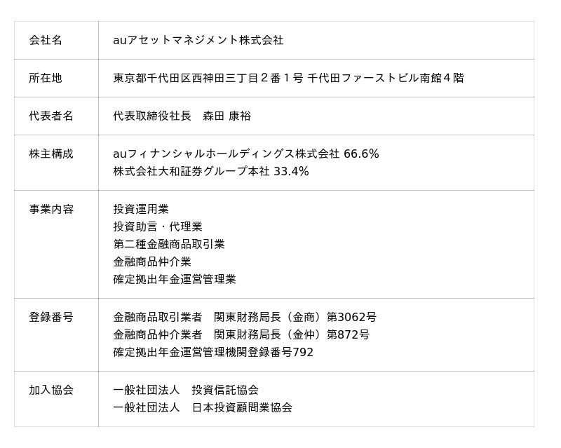 - ファンド名称の auAM は、auアセットマネジメントの略称です。