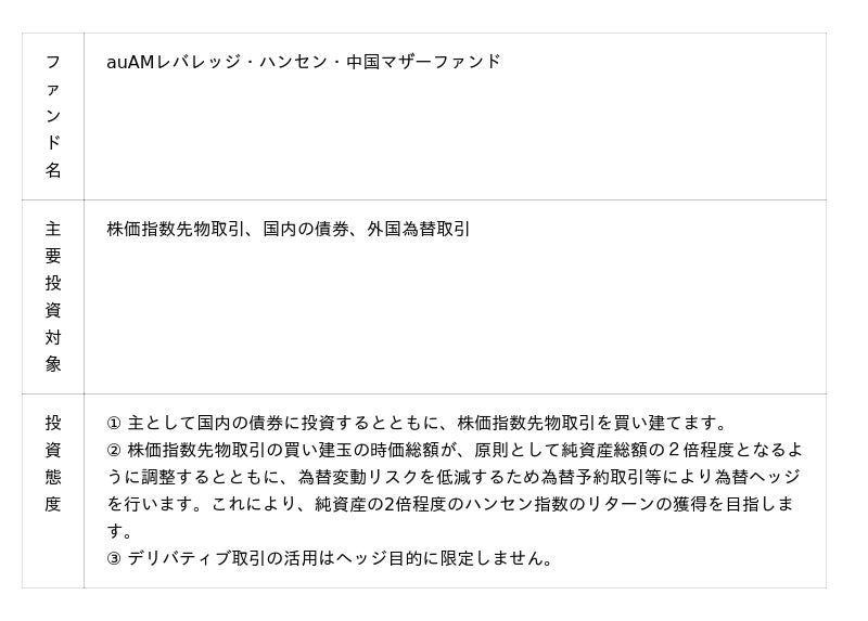 「auAMレバレッジ・ハンセン中国ファンド(円コース/香港ドルコース)」について