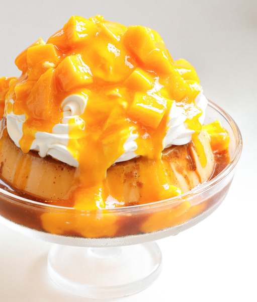 一方で、甘党派には、宮崎産完熟マンゴーをふんだんに使用したスイーツがラインナップ。特に注目は通常プリンの7.7倍という驚きのサイズの「てっげでか!マンゴープリン」だ。