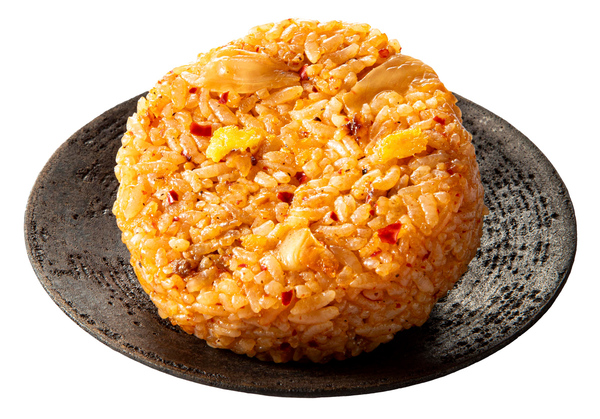 8月5日から加わる第2弾ラインアップのひとつ。キムチ、玉子、長ねぎを御飯に混ぜ込み、にんにくと黒胡椒を効かせた、旨辛な味わいのおむすびです。