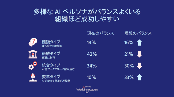 AIパルソナはバランス良く配置されることが重要だという。「懐疑タイプの人は鋭い質問や指摘をするので、組織にある程度必要なことがわかっている」とホフマン氏。加えて、スタンフォード大学との調査ではメリットとリスクを率直に伝える情報に触れた人は、高い確率でAIに対して前向きに姿勢となるという。