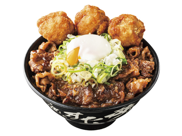 ▲炙り牛カルビの香味醤油だれすた丼 唐揚げ合盛り 1690円