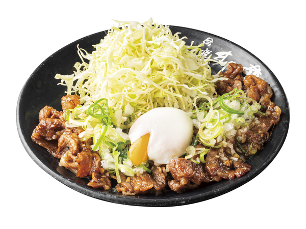 「炙り牛カルビの香味醤油だれすた丼」は、「牛力伝シリーズ」の第2弾です。焼肉の人気部位である牛カルビと豚バラ肉を、砕いたニンニクと刻んだ玉ねぎとともに炒めた上で、秘伝のニンニク醤油ダレをベースにした“すたみな香味醤油だれ”で香ばしく焼き上げ、茶わん三杯分もの大盛りご飯の上に盛り付けた、総重量500g超えの焼肉丼です。