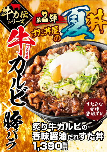 伝説のすた丼屋は8月1日から、全国の店舗(一部店舗を除く)で「炙り牛カルビの香味醤油だれすた丼」を期間限定で販売します。