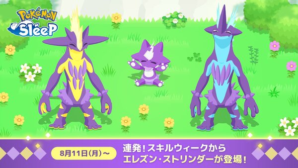 ポケモンは7月30日、スマートフォン向けアプリ「Pokémon Sleep(ポケモンスリープ)」で2025年8月11日より新たなどくポケモン「エレズン」「ストリンダー」を追加すると発表した。