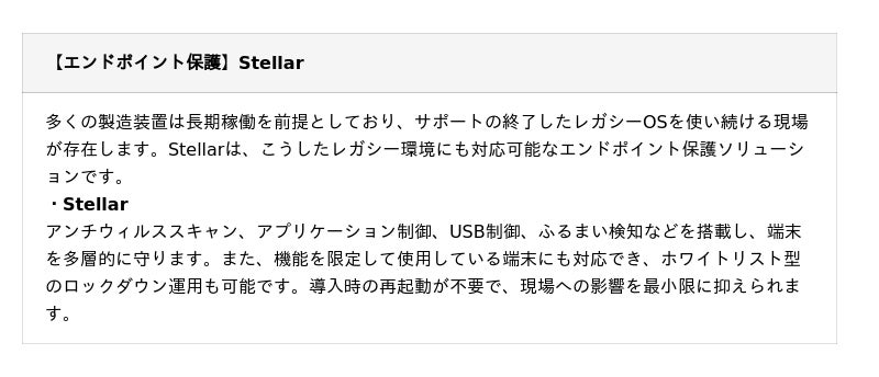 製造装置は長期間の稼働を前提としており、更新が困難な旧型のレガシーOSを使用し続ける現場も多く、標準的なアップデートによる防御が困難。