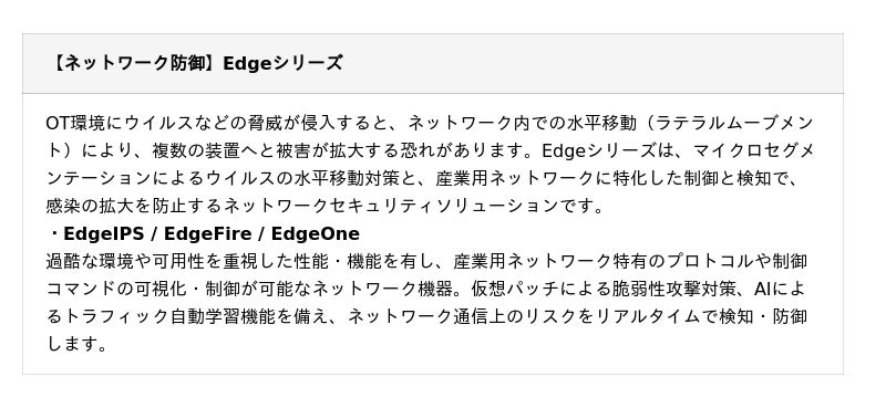 今後も、DXの加速に伴い一層重要性を増すOTセキュリティ分野への取り組みを強化し、より多くの製造業のお客様が安心してDXを推進できる環境整備に貢献してまいります。