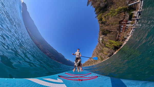 手ブレ補正は電子式で、RockSteady 3.0とHorizonSteadyを搭載。パノラマ動画では、DJI Mimoアプリを使用してエクスポートする際に映像ブレ補正モードを選択できる。単レンズモードでは、HorizonSteadyは標準視野(16:9、歪み補正済み)の通常の平面ビデオで、フレームレートが60fpsまでの場合にのみサポートされる。