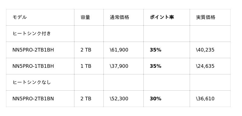 また、最新世代のGen5 SSDは、セール対象外ですが、セール期間中ポイントを30~35%付与いたします。この機会にぜひ、お買い求めください。