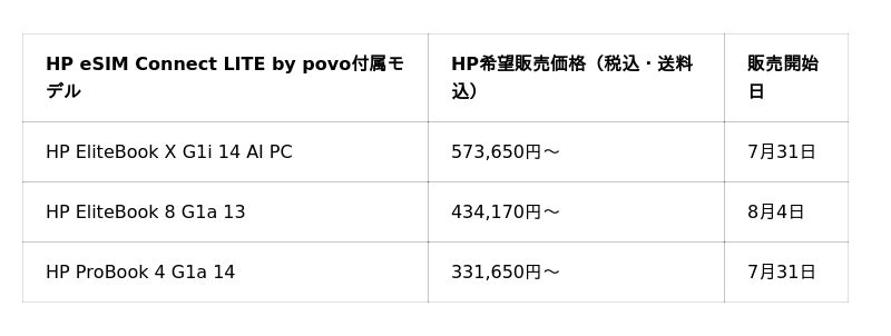 株式会社 日本HP(本社:東京都港区、代表取締役 社長執行役員:岡戸 伸樹)は、eSIMによるデータ通信5年間利用権付のLTE接続「HP eSIM Connect LITE by povo」対応モデルを個人向けに販売します。