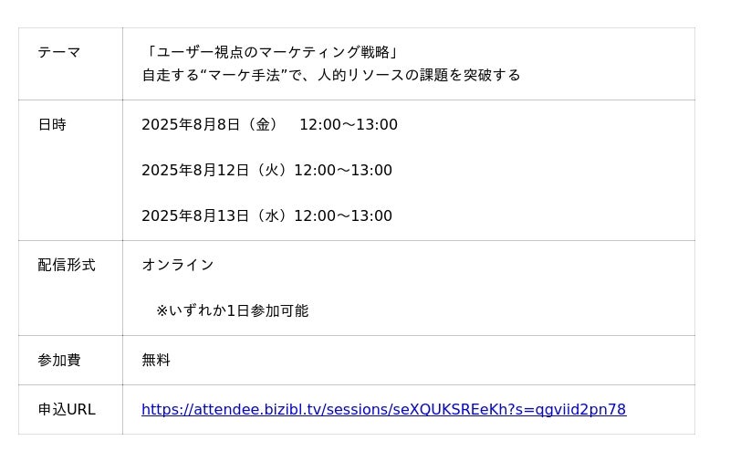 【8/8(金)~3日間 無料開催】ユーザー視点のマーケティング戦略 ~自走する“マーケ手法”で、人的リソースの課題を突破する~