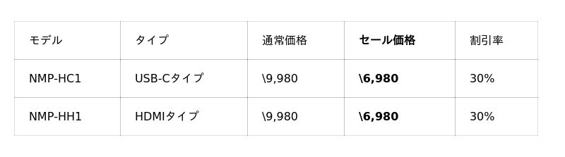 回のセールでは、超小型軽量のプロジェクターNX1を51%OFFの¥18,000でご提供します。また、スマホなどのデバイスで、ホストデバイスと接続機器に同時給電をしながら、投影などのデータ出力まで行うPDPアダプター、当社製ポータブルSSD NX-P2SEシリーズを接続しながらiPhoneの背面にPDPアダプターをセット可能なMagSafe対応PDPアダプター専用ケースもセール価格にて販売いたします。