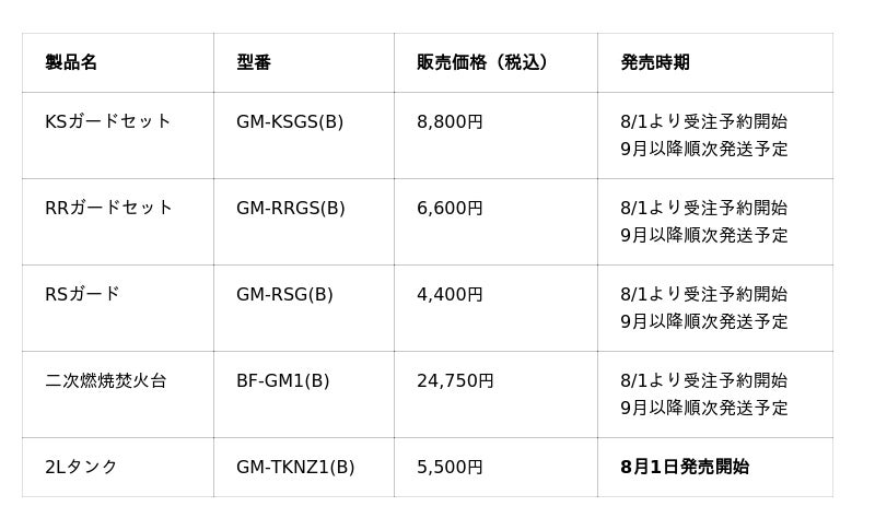 ・2025年9月以降: カスタマイズパーツ・焚火台順次発送予定