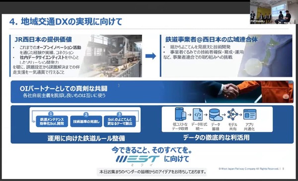 最後に、「JR西日本の強みは、社内のデータサイエンティストを中心とした課題解決の伴走力にある」とし、「地域DXのパートナーとして、真剣な共闘をしたい」と締めくくった。