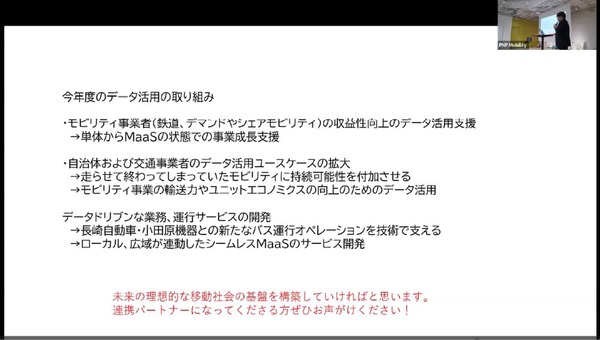 「こうした取り組みから見えてくるデータを利活用することによって、関係する企業・団体と協力し、より良い効果的な公共交通の構築につなげていきたい」と語り、技術と仕組みの両面で、モビリティの“当たり前”を変えていく必要性を強調した。