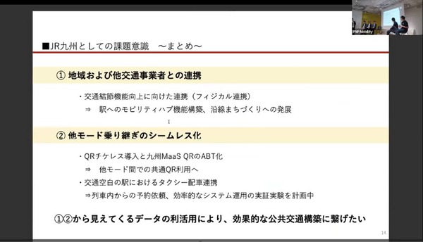 JR九州では2024年4月に「一般社団法人九州MaaS協議会」を設立し、同年8月には「九州MaaS」サービスを開始。現在は100者を超える団体が参画しており、九州全県を対象にモードをまたいだ交通連携に取り組んでいる。