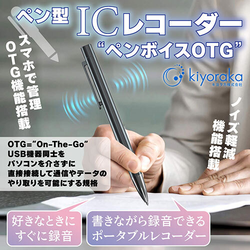 ノイズ軽減機能、大容量32GB内蔵メモリ、OTG機能を備えており、スマホやパソコンで簡単に管理が可能です。また、見た目が普通のボールペンと同じでありながら、実用的な録音機能を搭載しています。軽量でスタイリッシュなデザインにより、持ち運びが便利です。簡単操作のワンタッチ録音機能や、自動音声認識機能を搭載しているため、初めてでも簡単に使いこなせます。MP3プレーヤーとしても活用可能です。