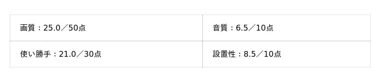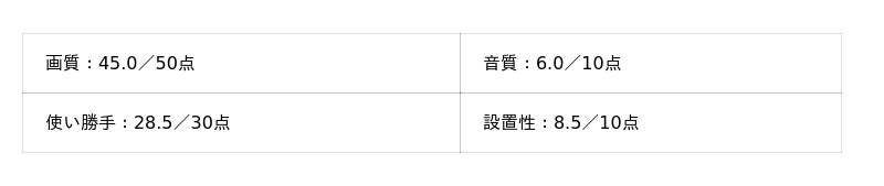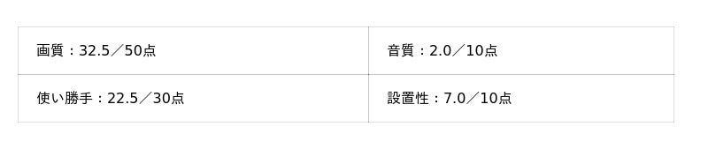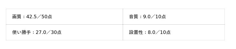 過去の中低価格帯の検証では、透明感のある映像でベストをだった製品。高級機同士を比べた今回の検証においても、明るめの部屋でも映像の内容は把握でき、4Kの解像感がある画質は評価されました。セリフが聞き取りにくい場面があったので、外部スピーカーなどの併用がよさそうです。