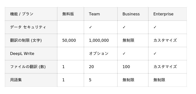 DeepL翻訳は、ユーザー数・利用形態に応じた柔軟なプランを用意しております。