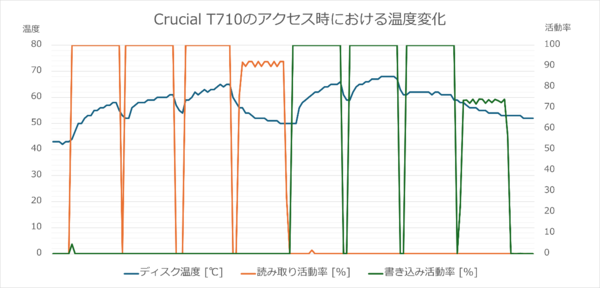 このことから、概ねスペック値どおりの高速転送を実現していると言えよう。動作温度についても大幅に改善が見られ、マザーボード標準のヒートシンクでも最大70℃程度に収まり、性能低下することなく実用的なストレージになっている。