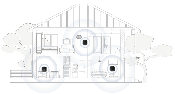 複数台を設置した場合でも、機器同士が自動で最適なネットワークを構築するため、面倒な接続設定は必要ない。利用者は電波が届く範囲を考えながら適切な場所に機器を置くだけで、簡単にWi-Fiの利用範囲を広げられる。