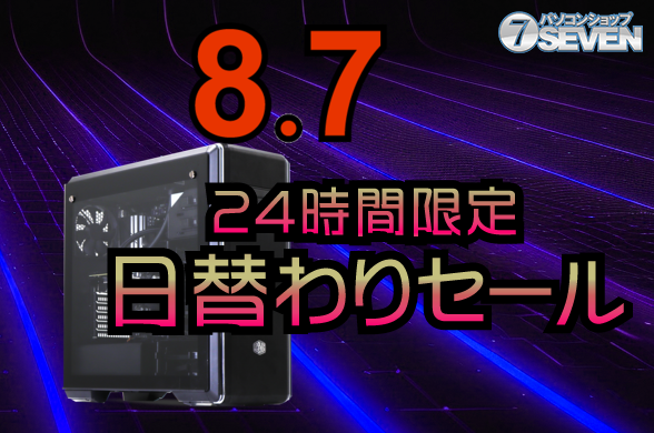 セブンアールジャパンは、8月7日に「2025/8/7 24時間限定セール」を開催する。セールでは、最新のゲーミングパソコンやデスクトップパソコンが最大50,000円オフという大幅な値引きが行われる。