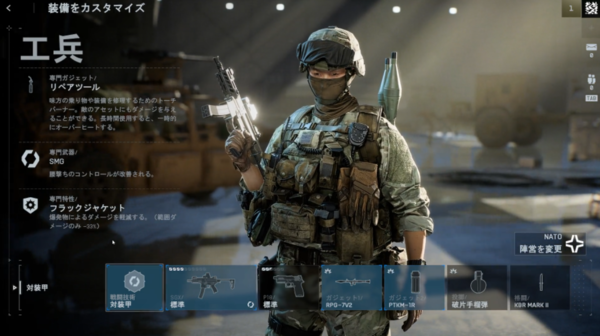 エンジニアは、対車両のスペシャリストで、ロケットランチャーや対戦車地雷を所有でき、向かってくる敵の戦車や車両を無力化しやすいクラスになっています。もちろん、逆に味方の車両の修理も可能で、車両も登場する大規模戦闘のモードでは、いなくてはならないクラスだと感じました。