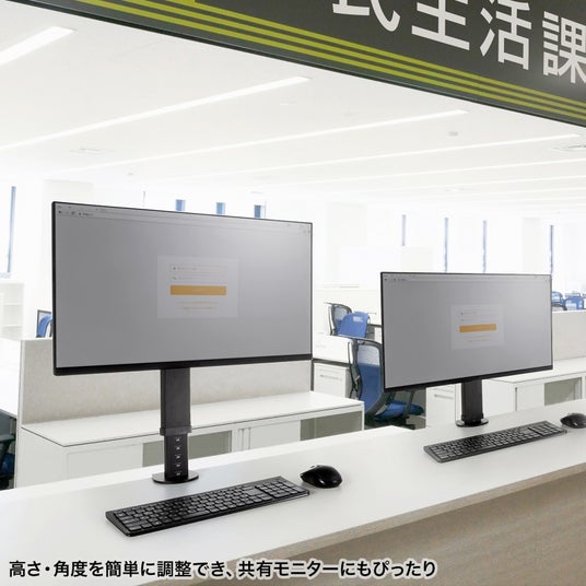 高さと角度の調節が簡単にできるため、複数人で共有するモニターにも最適です。