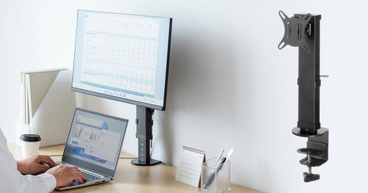 最適な目線の高さに調節できる、クランプタイプのモニタースタンドです。