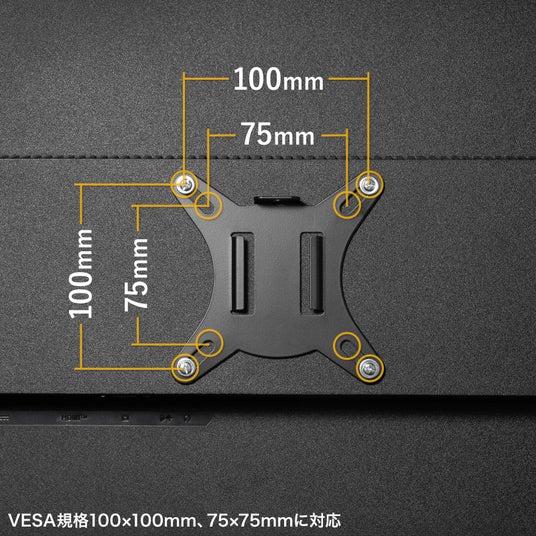 VESA規格(75×75mm、100×100mm)に準拠したモニターの取り付けが可能です。