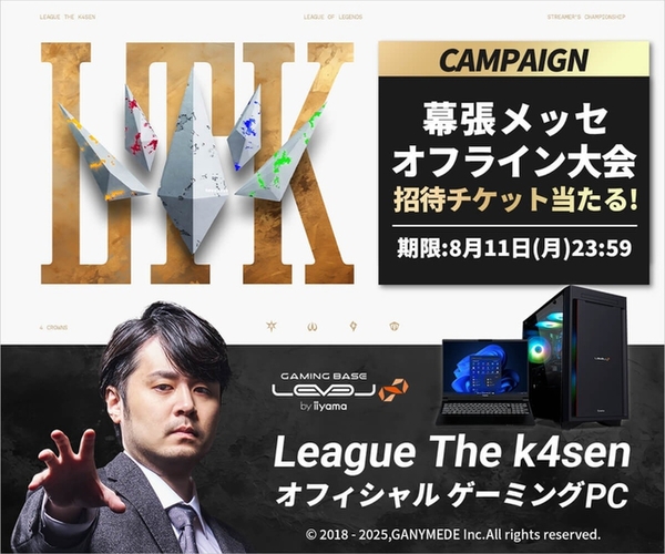 キャンペーンでは対象モデルを購入し、エントリーフォームから申込みをすることで応募が完了する。特に、「League The k4sen オフィシャル ゲーミングPC」を購入した場合、当選確率が4倍に上昇するという。また、X(Twitter)での応募で、k4senのサイン入り大会オリジナルポスターが当たるSNSキャンペーンも併催されている。応募期間は8月27日23:59まで。