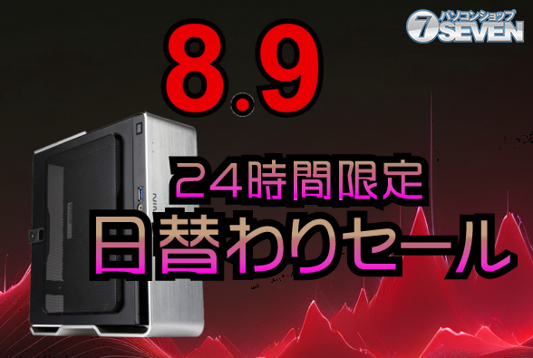 セブンアールジャパンが運営するパソコンショップSEVENは、8月9日に24時間限定で割引を提供する『2025/8/9 24時間限定セール』を開催する。この日限りの特別セールには、最新のゲーミングPCやデスクトップPCが最大60,000円引きで並ぶ予定だ。