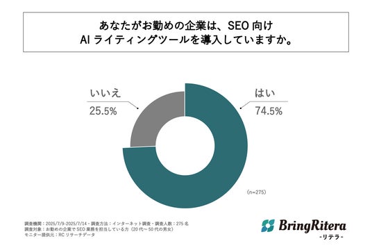 SEO業務を担当している方が勤める企業のうち約75%がSEO向けAIライティングツールを導入している