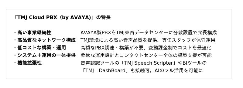 AIによる応対自動評価「TMJ Conversation Monitor」とクラウドPBX「TMJ Cloud PBX(by AVAYA)」を新たに提供開始